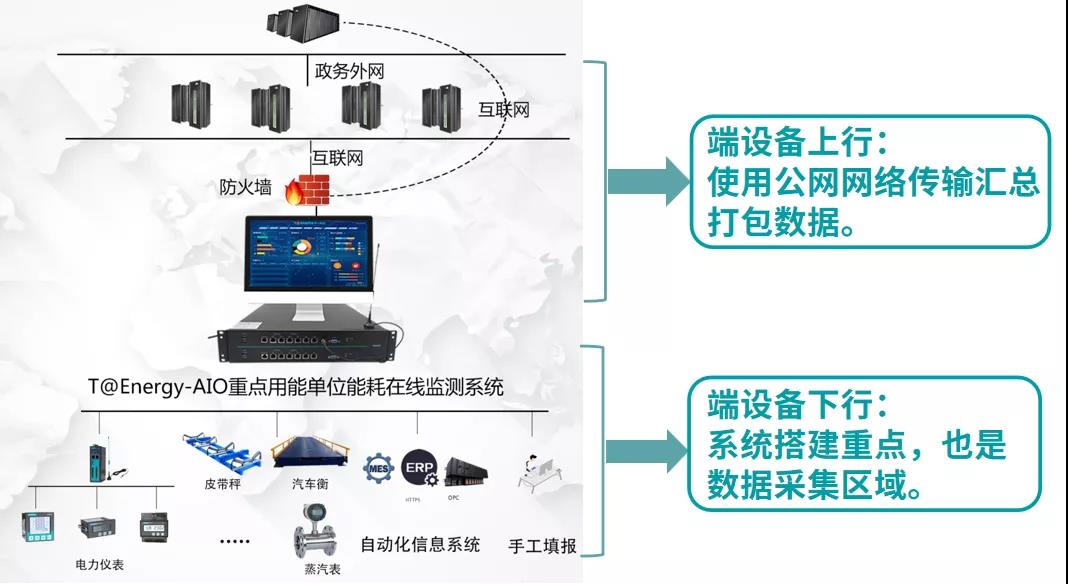 能耗在線監(jiān)測(cè)系統(tǒng),可根據(jù)企業(yè)需要定制企業(yè)內(nèi)部的能源管理系統(tǒng),也可以直接通過(guò)端設(shè)備系統(tǒng)上傳省市監(jiān)測(cè)平臺(tái)