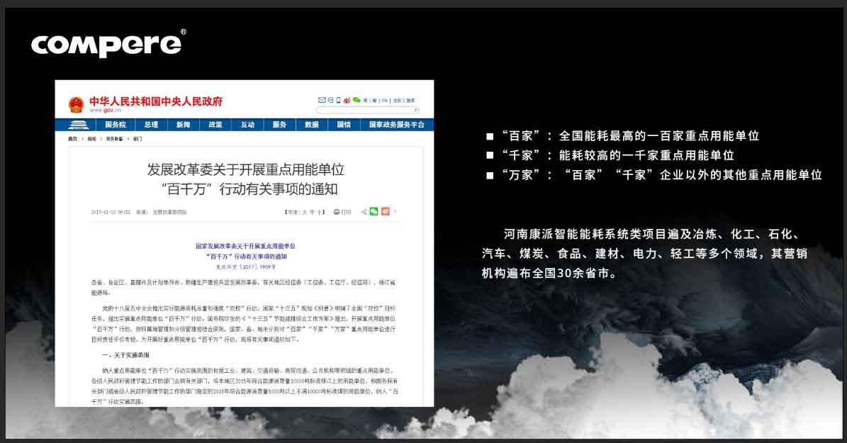 T@Energy-Online能耗在線監(jiān)測(cè)系統(tǒng),是康派智能自主研發(fā)的能耗監(jiān)測(cè)系統(tǒng),積極響應(yīng)了國(guó)家發(fā)展改革委關(guān)于能耗在線監(jiān)測(cè)系統(tǒng)推廣建設(shè)通知,在協(xié)助重點(diǎn)用能單位信息化轉(zhuǎn)型、促進(jìn)節(jié)能增效并提升市場(chǎng)競(jìng)爭(zhēng)力的同時(shí),完成系統(tǒng)建設(shè)任務(wù)與數(shù)據(jù)上傳要求,通過(guò)政府驗(yàn)收。