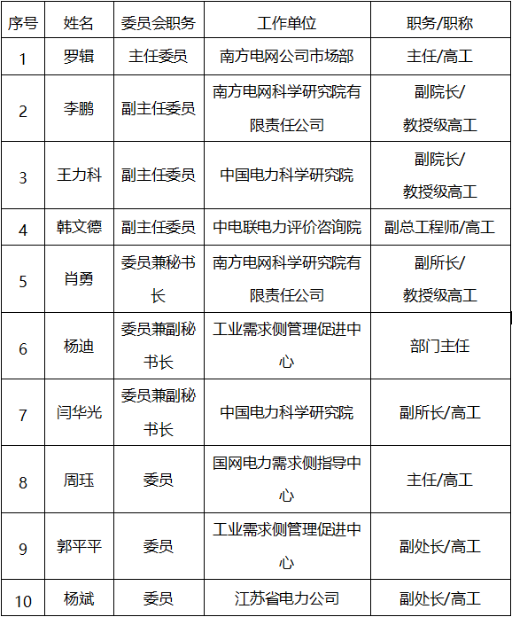 第一屆全國電力需求側管理標準化技術委員會擬由51名委員組成,羅輯任主任委員,李鵬、王力科、韓文德任副主任委員,肖勇任委