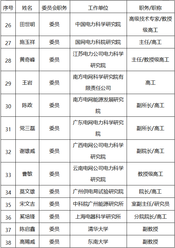 員兼秘書長,楊迪、閆華光任委員兼副秘書長,秘書處由南方電網科學研究院有限責任公司承擔。