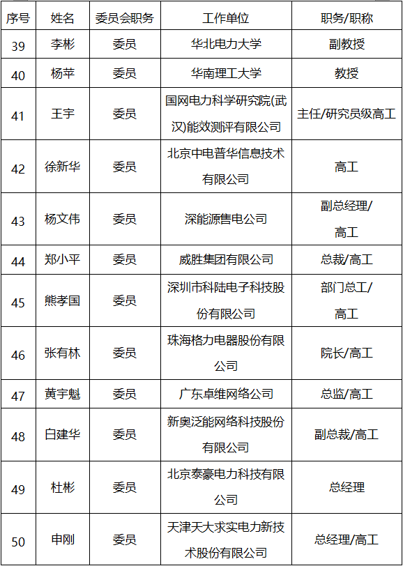 第一屆全國電力需求側管理標準化技術委員會委員名單(見圖表):