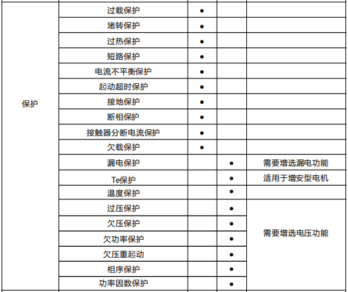 KPM60電動(dòng)機(jī)保護(hù)器保護(hù)功能詳表: