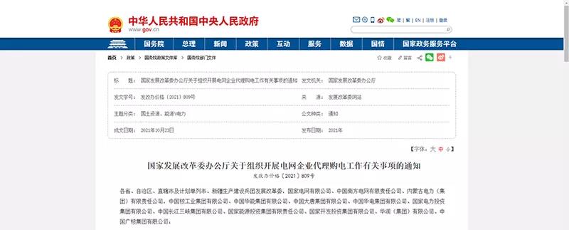 2021年10月23日 國家發(fā)展改革委辦公廳發(fā)布:《國家發(fā)展改革委辦公廳關(guān)于組織開展電網(wǎng)企業(yè)代理購電工作有關(guān)事項的通知》進(jìn)一步取消工商業(yè)目錄銷售電價,規(guī)范電網(wǎng)企業(yè)代理購電方式流程,保障了電價市場化改革的落地。