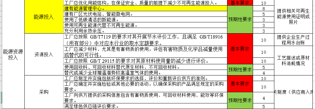 其中在綠色工廠申報(bào)的一級(jí)標(biāo)準(zhǔn)中有能源資源投入這一方面的內(nèi)容,包含有建設(shè)能源管理中心這一項(xiàng)。對(duì)于建設(shè)有能源管理中心的企業(yè),在申報(bào)綠色工廠時(shí)會(huì)有加分。