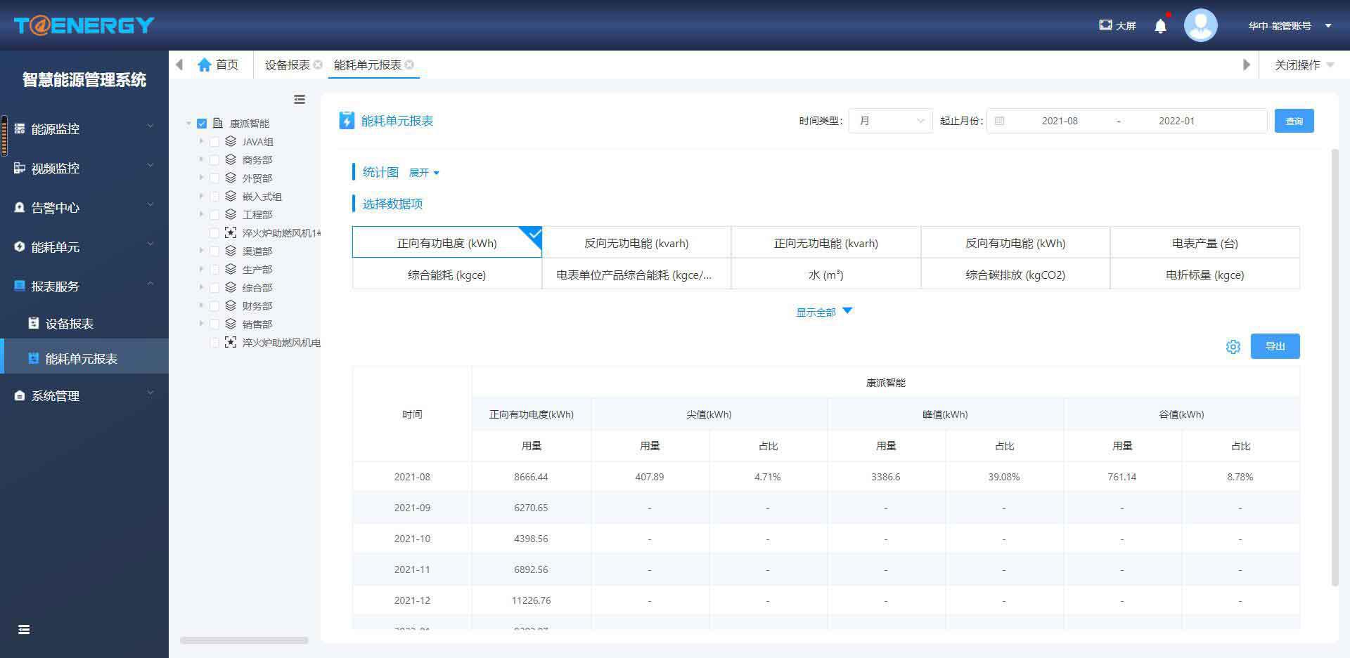 報表服務(wù)功能非常的完善,用戶可以根據(jù)自己的實際需求對不同類型的能源介質(zhì)進(jìn)行個性化的報表打印,例如可選擇報表的格式類型、周期等。該功能避免了人工抄錄設(shè)備能耗數(shù)據(jù)造成的誤差,一方面保障了數(shù)據(jù)的準(zhǔn)確性,另一方面降低運(yùn)維工作人員的工作強(qiáng)度。