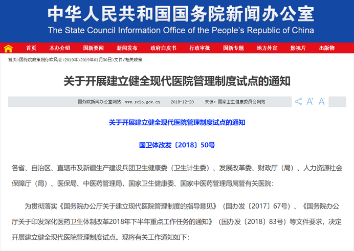 2、2018年12月5日《關(guān)于開展建立健全現(xiàn)代醫(yī)院管理制度試點(diǎn)的通知》