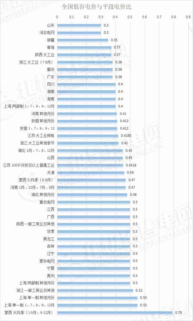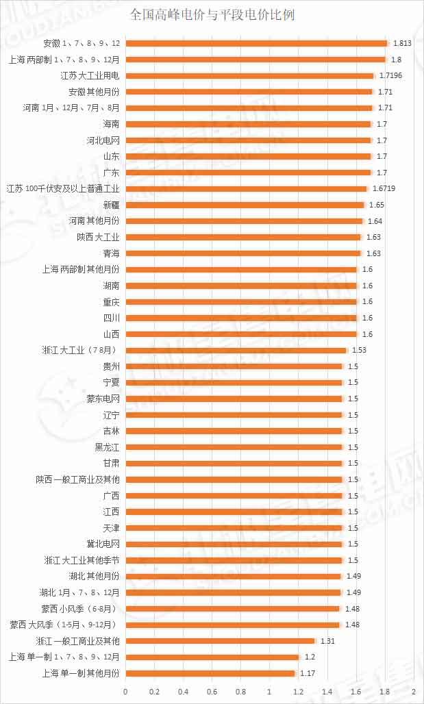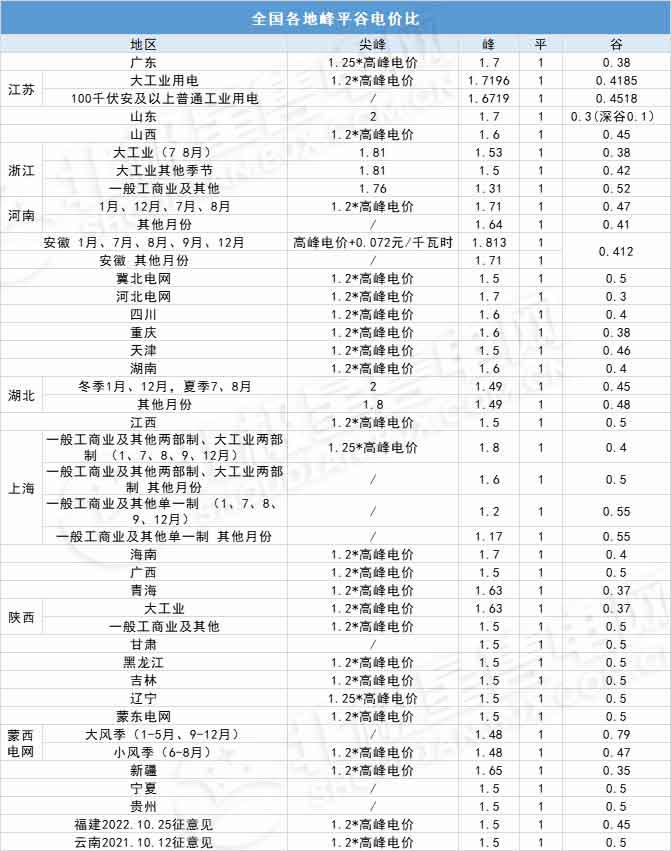 全國(guó)各地分時(shí)電價(jià)-峰谷電價(jià)的浮動(dòng)情況